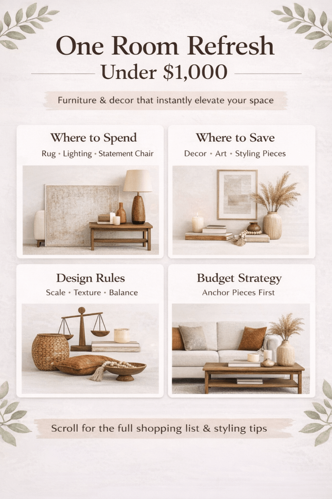 Refreshing a room doesn’t have to mean starting over. With a few intentional furniture upgrades and elevated styling pieces, you can completely transform how a space looks and feels, without crossing the $1,000 mark.