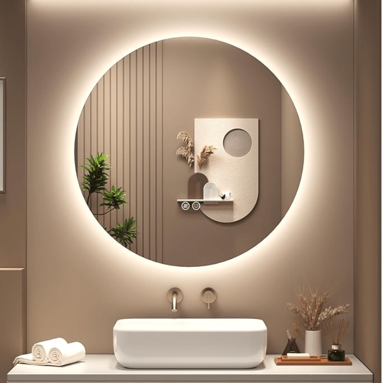 Round mirrors are timeless and grounding, especially in organic modern interiors.