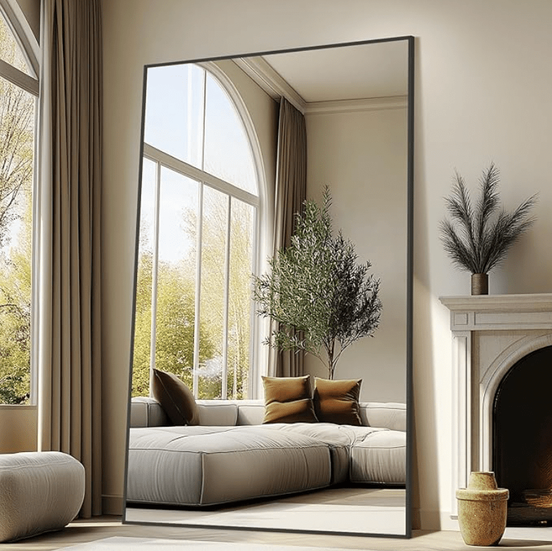 An oversized mirror is one of the easiest ways to make your living room feel brighter and more high-end.