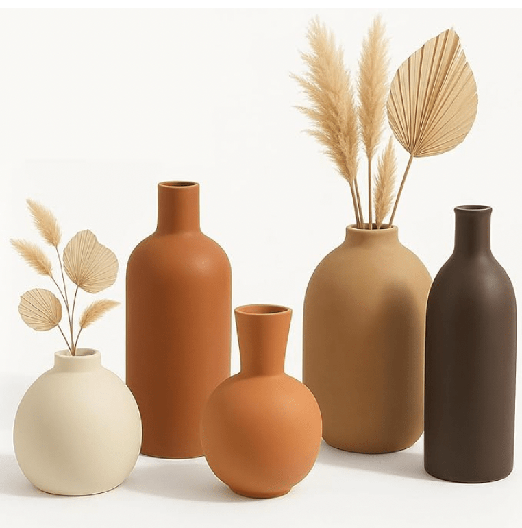 - Stick to 2–3 materials max (wood, ceramic, metal)