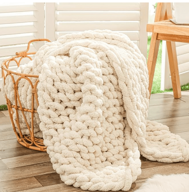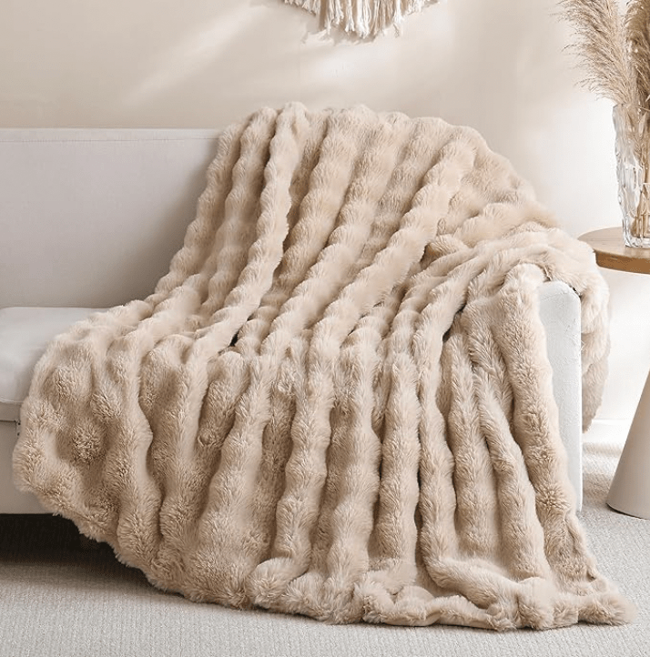 - Add a throw blanket in a warm color draped over the sofa or chair.
