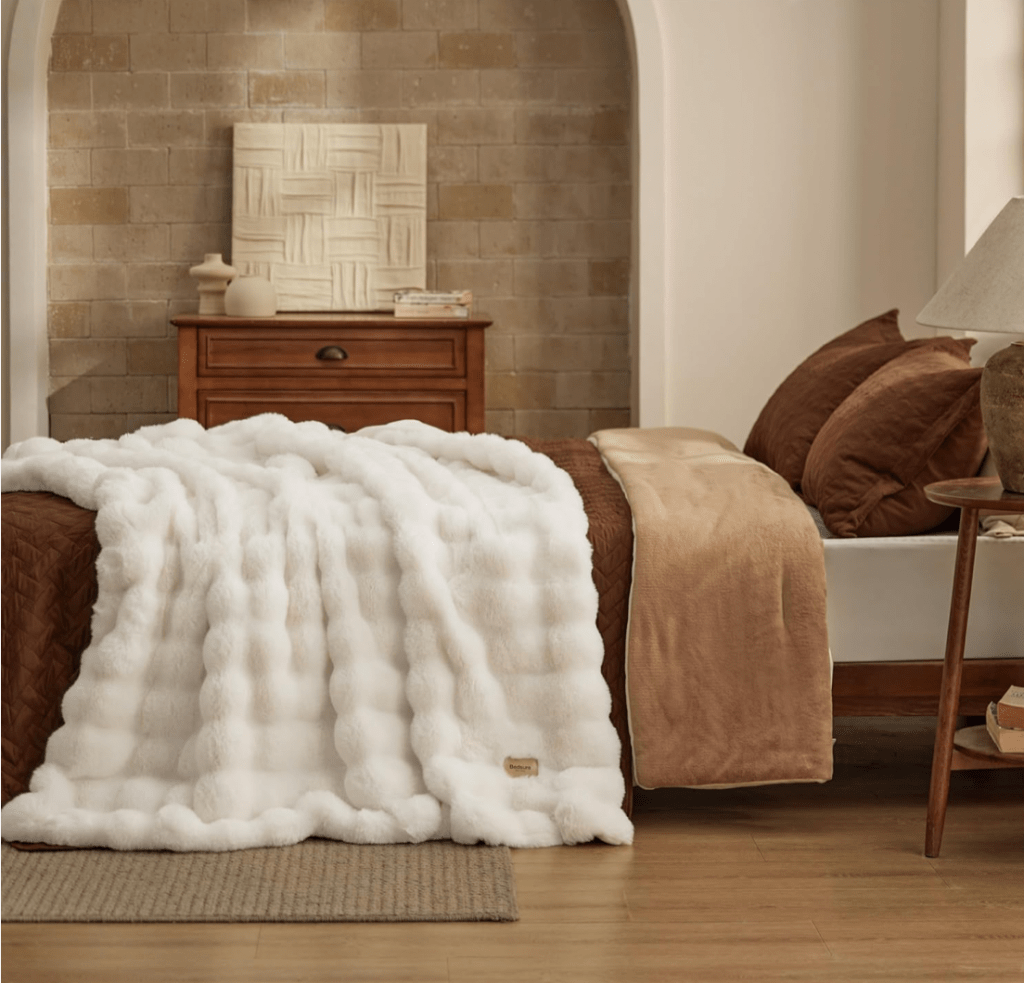 Consider one small indulgence: a heated blanket, a knit bed runner, or a fresh set of winter pillowcases.
