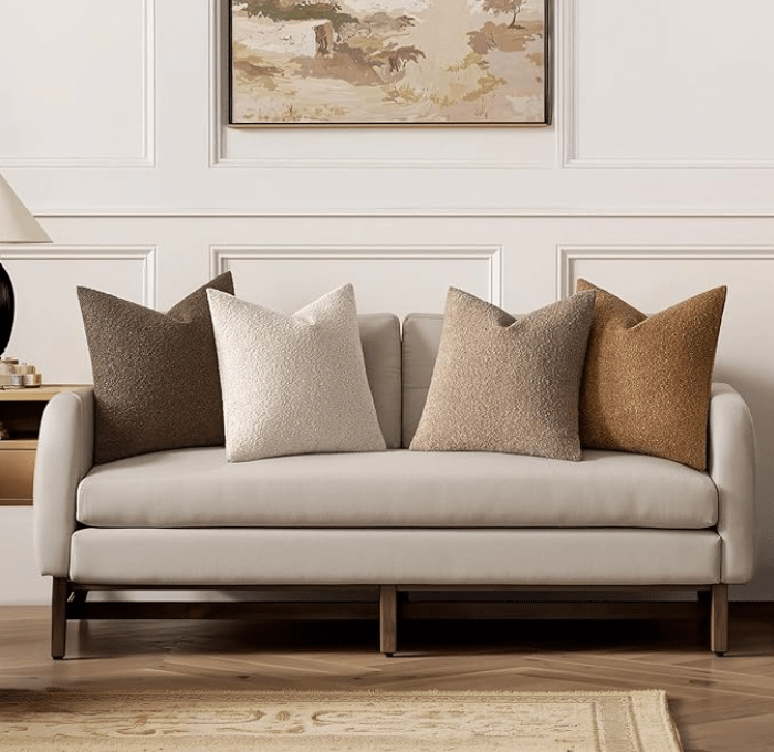- Mix textures: one chunky knit, one soft velvet, one patterned or woven.