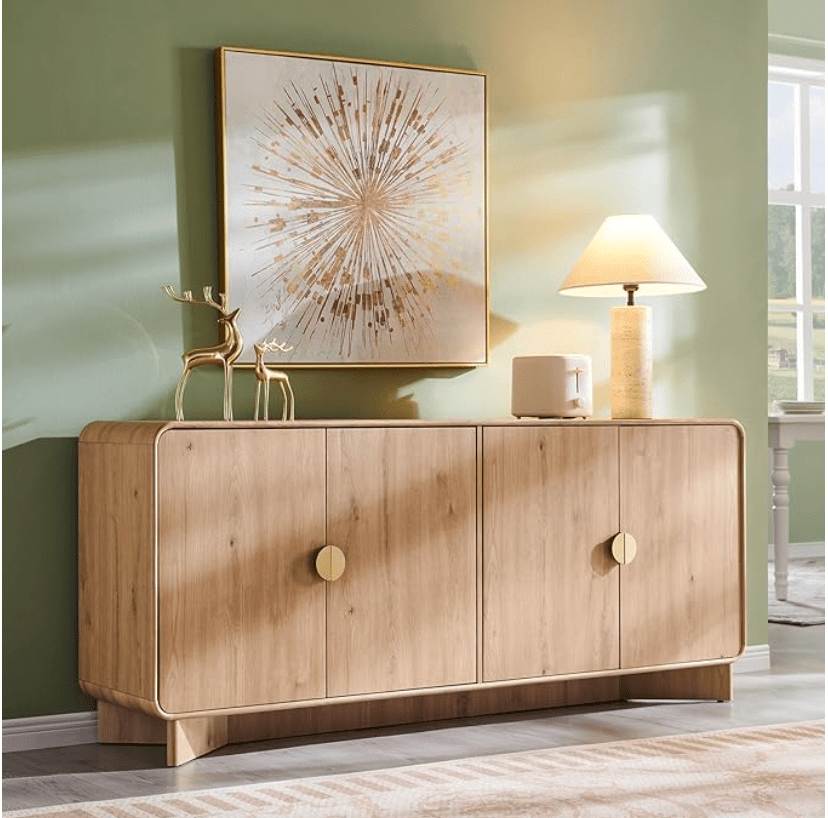 - Natural materials—mango wood, rattan, cane, or matte metal