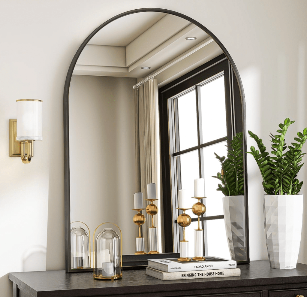 - An oversized minimalist black-framed mirror