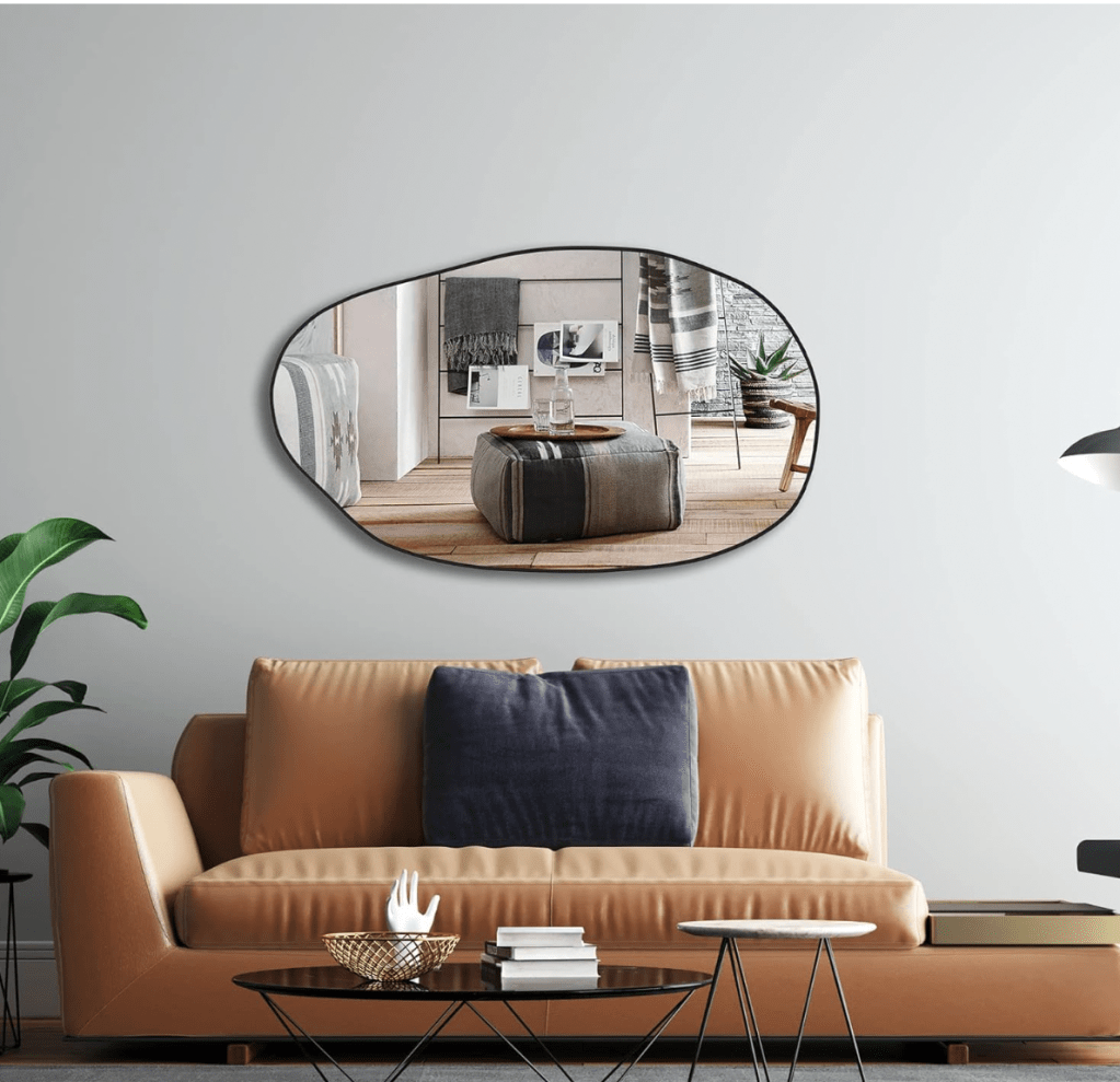 - An irregular organic-shaped mirror for a sculptural touch