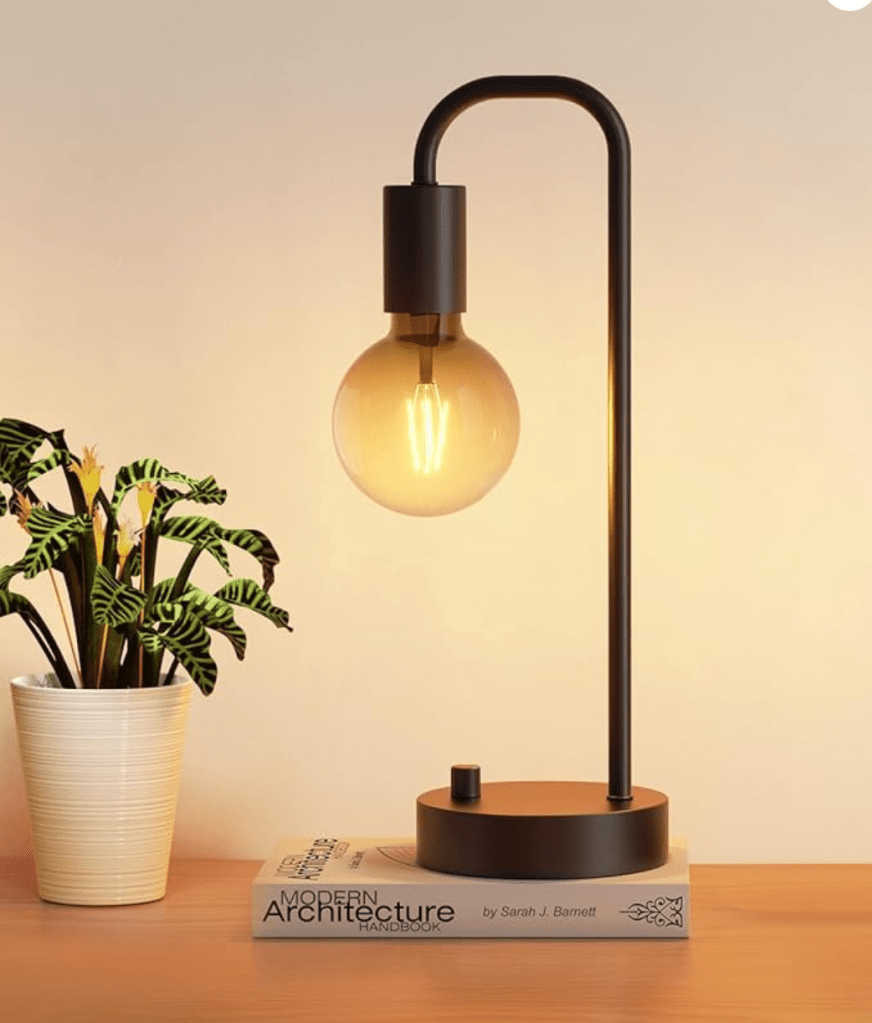 - A small ceramic or rattan table lamp