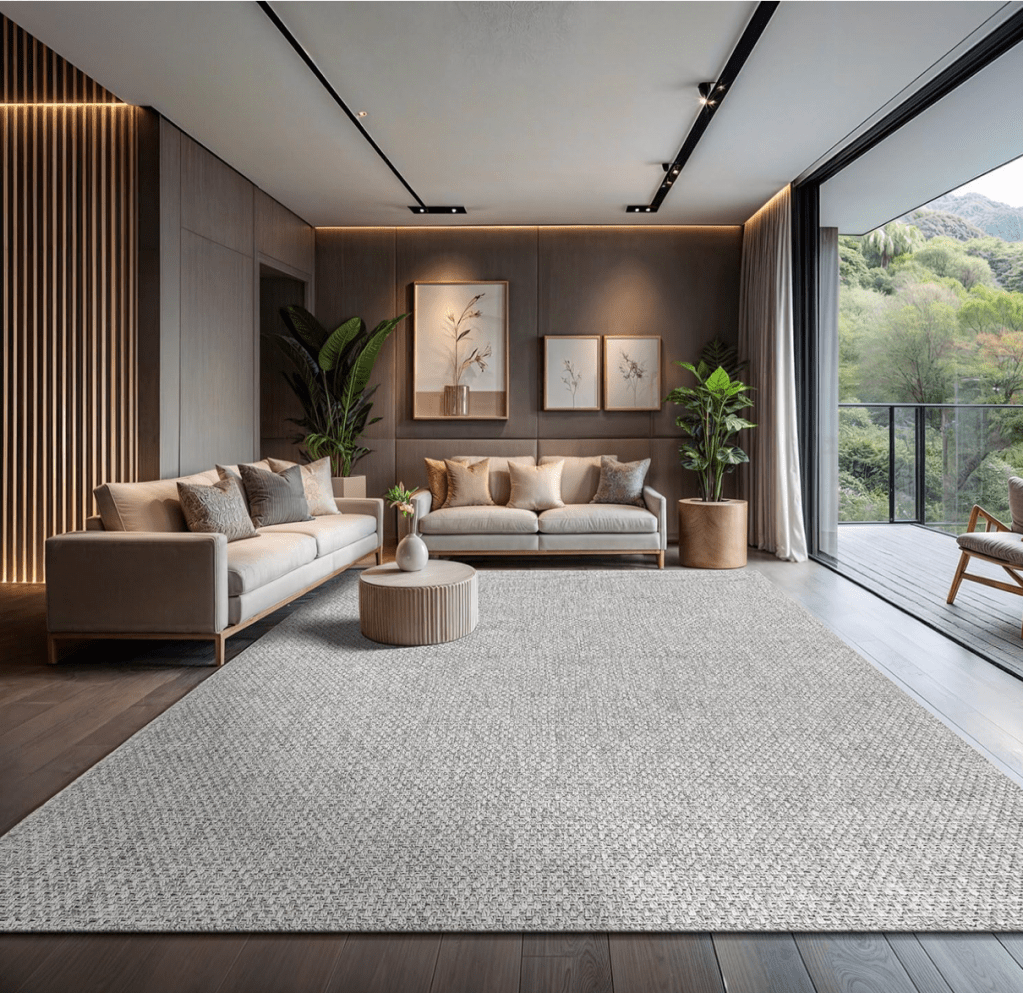 A well-chosen rug grounds the room and sets the tone for everything else. Designers favor neutral rugs with subtle texture over bold patterns because they work with any color palette and age beautifully.