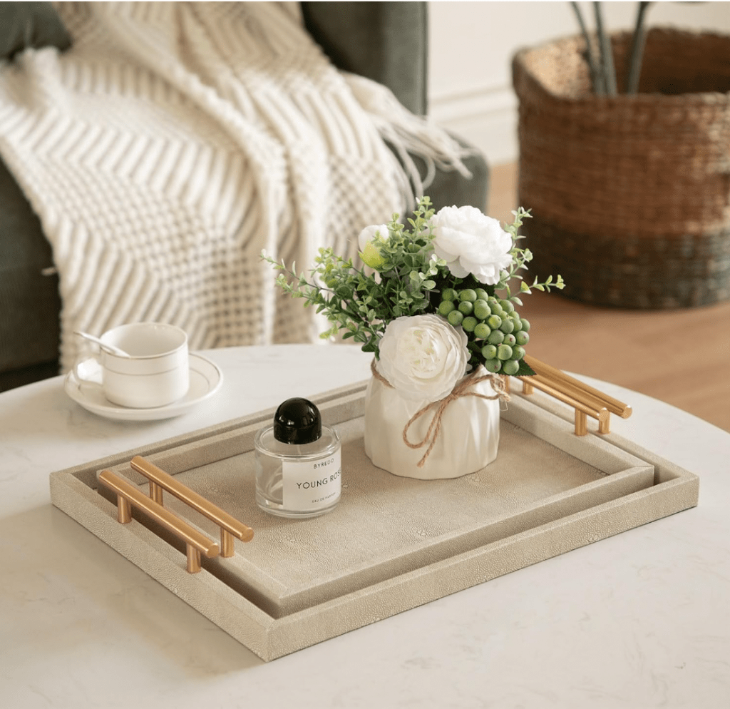 - Decor (vases, candles, trays)